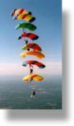 eight parachutes while flying through the skies, and daring night time jumps